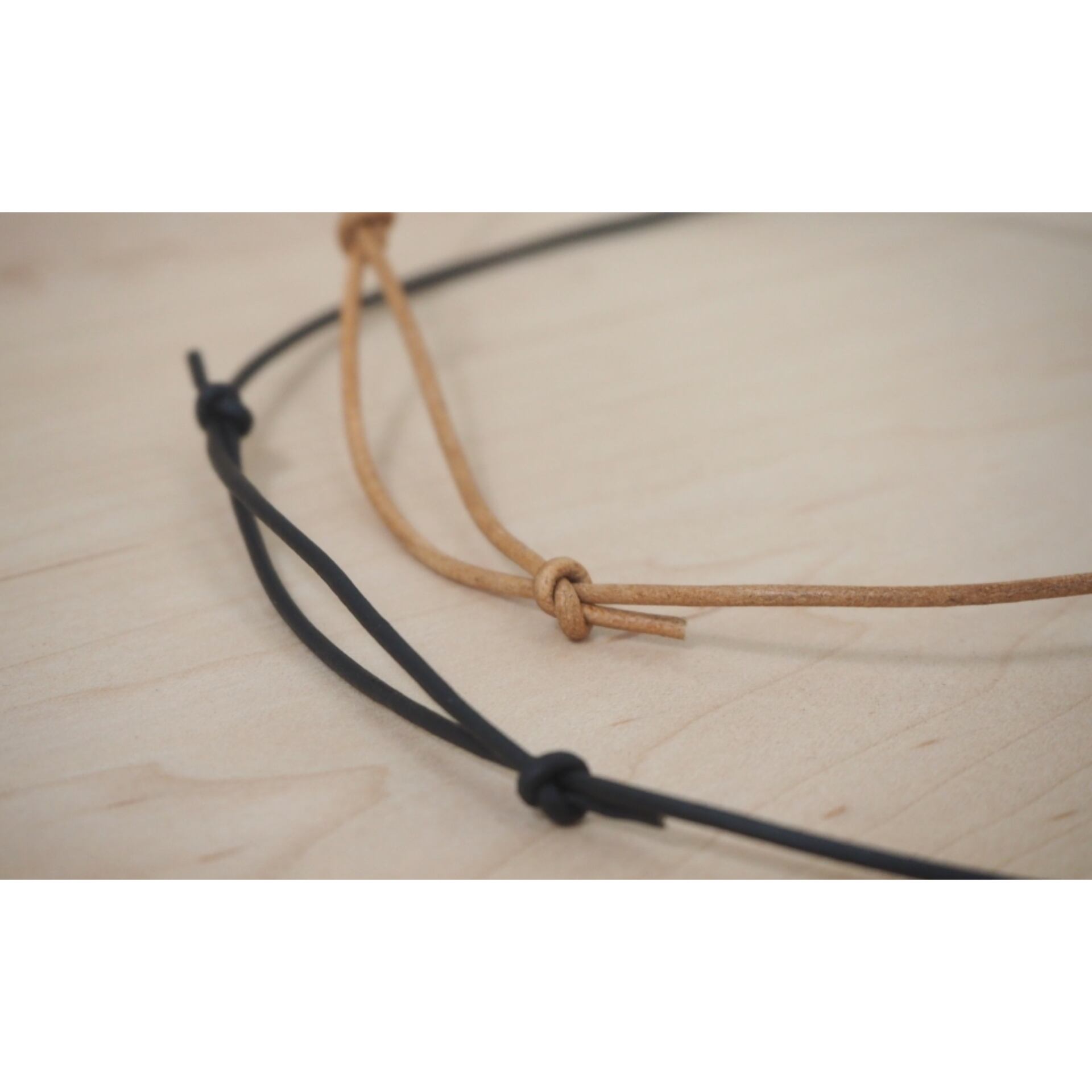 革紐は、黒と橙の2種類からお選びいただけます。購入の際、備考欄にご記入お願いします。記入がない場合は黒の革紐でお作りいたします。ご注意下さい。